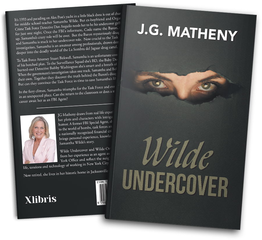 It’s 1993 and parading on Alex Post’s yacht in a little black dress is out of character for middle school teacher Samantha Wilde. But ex-boyfriend and Organized Crime Task Force Detective Dan Anguilo needs her to be his undercover girlfriend for just one night. Once the FBI’s informant, Code name the Baron, shows up, Samantha’s crazy role will be over. But the Baron mysteriously disappears, and Samantha is stuck in her undercover role. Now crucial to the Task Force’s investigation, Samantha is an amateur among professionals, drawn deeper and deeper into the deadly world of the La Sombra del Jaguar drug cartel.